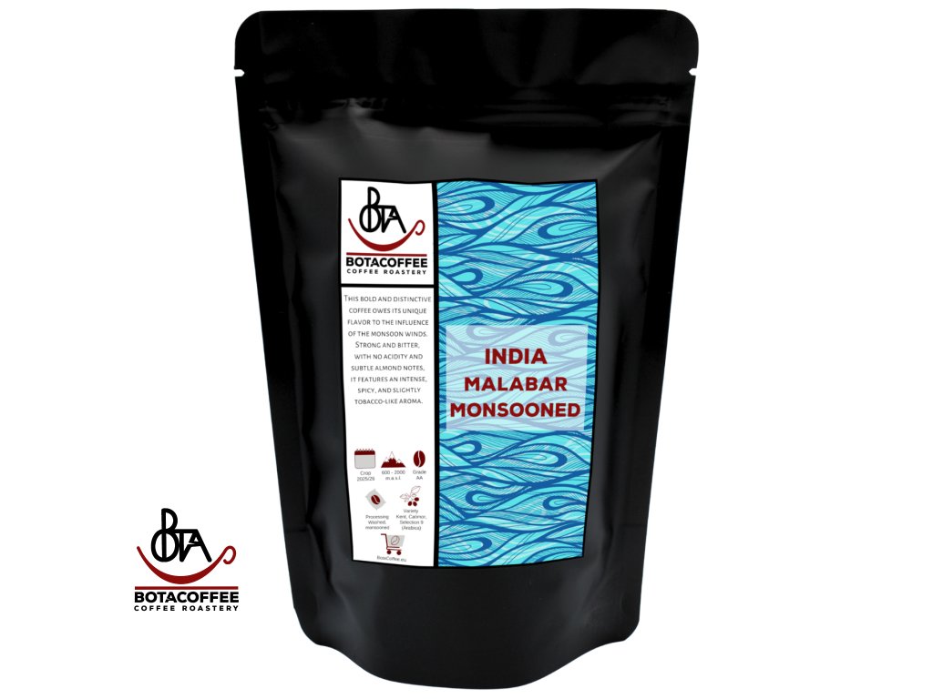 BotaCoffee proudly brings you this exceptional Indian coffee with a truly unique character. Its beans are unlike any other—large and pale yellow when unroasted, not due to the variety but because of the special monsooning process. Even after roasting, the beans remain large, smooth, and glossy, carrying the signature flavor that many coffee lovers adore.